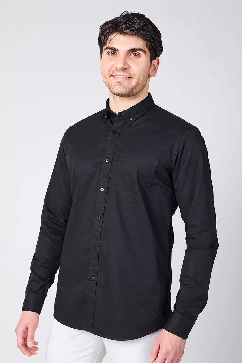 This Black Giza Slub Shirt refined comfort with everyday sophistication. Made from a premium Giza cotton blend with a subtle slub texture, it feels soft and breathable for all-day wear. Designed with full sleeves, a button-down collar, and a clean solid pattern, it offers a sleek, minimal look. The curved hem allows for easy styling—tucked or untucked. Tailored in a flattering slim fit, it delivers a sharp silhouette perfect for workdays or casual outings. Available in a versatile solid colour that complements any wardrobe. The model is 6 feet tall and wears a size L. Cold machine wash recommended.