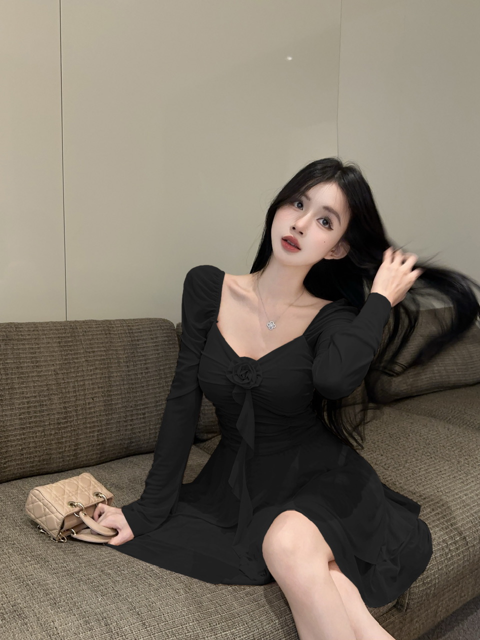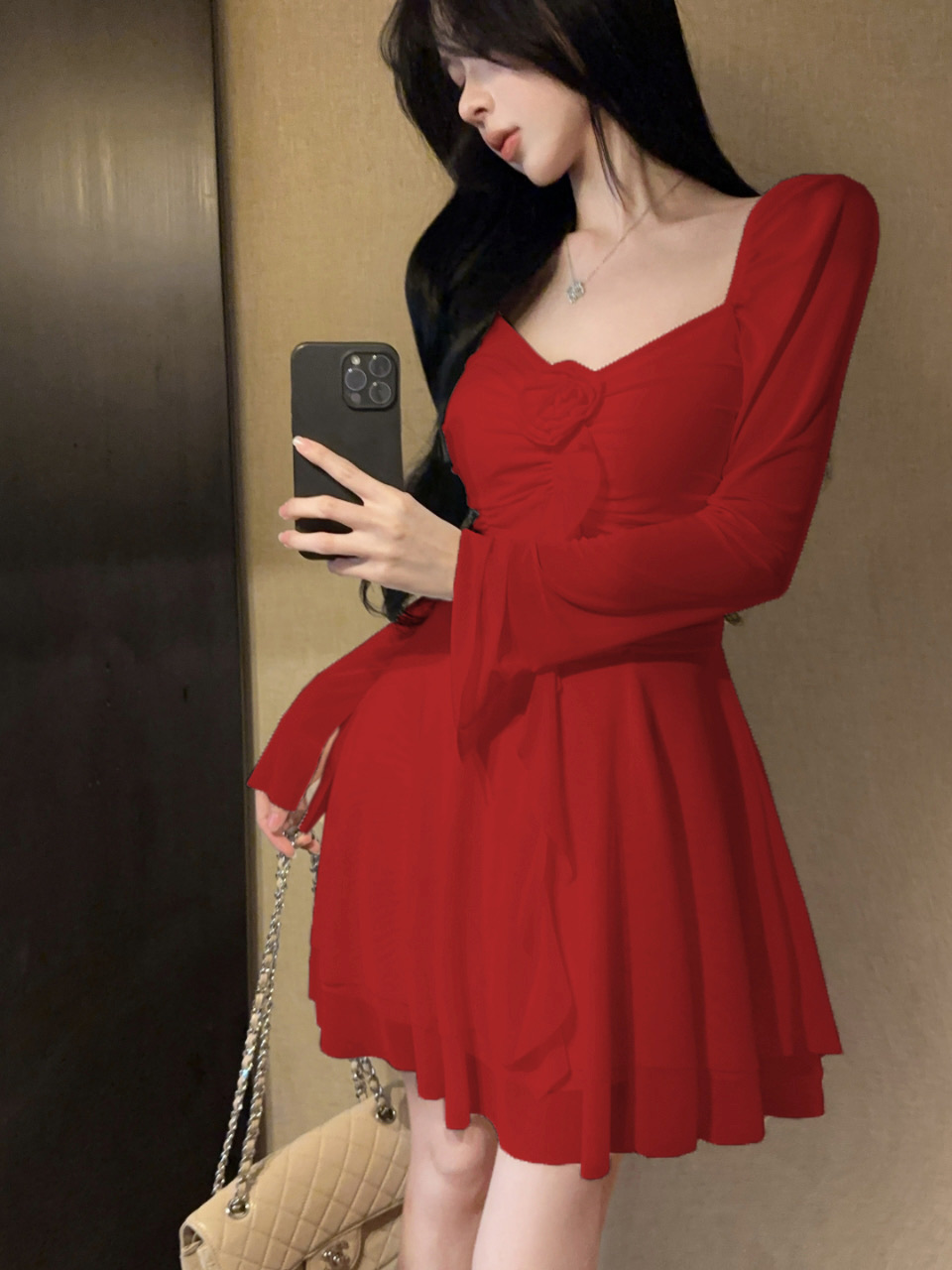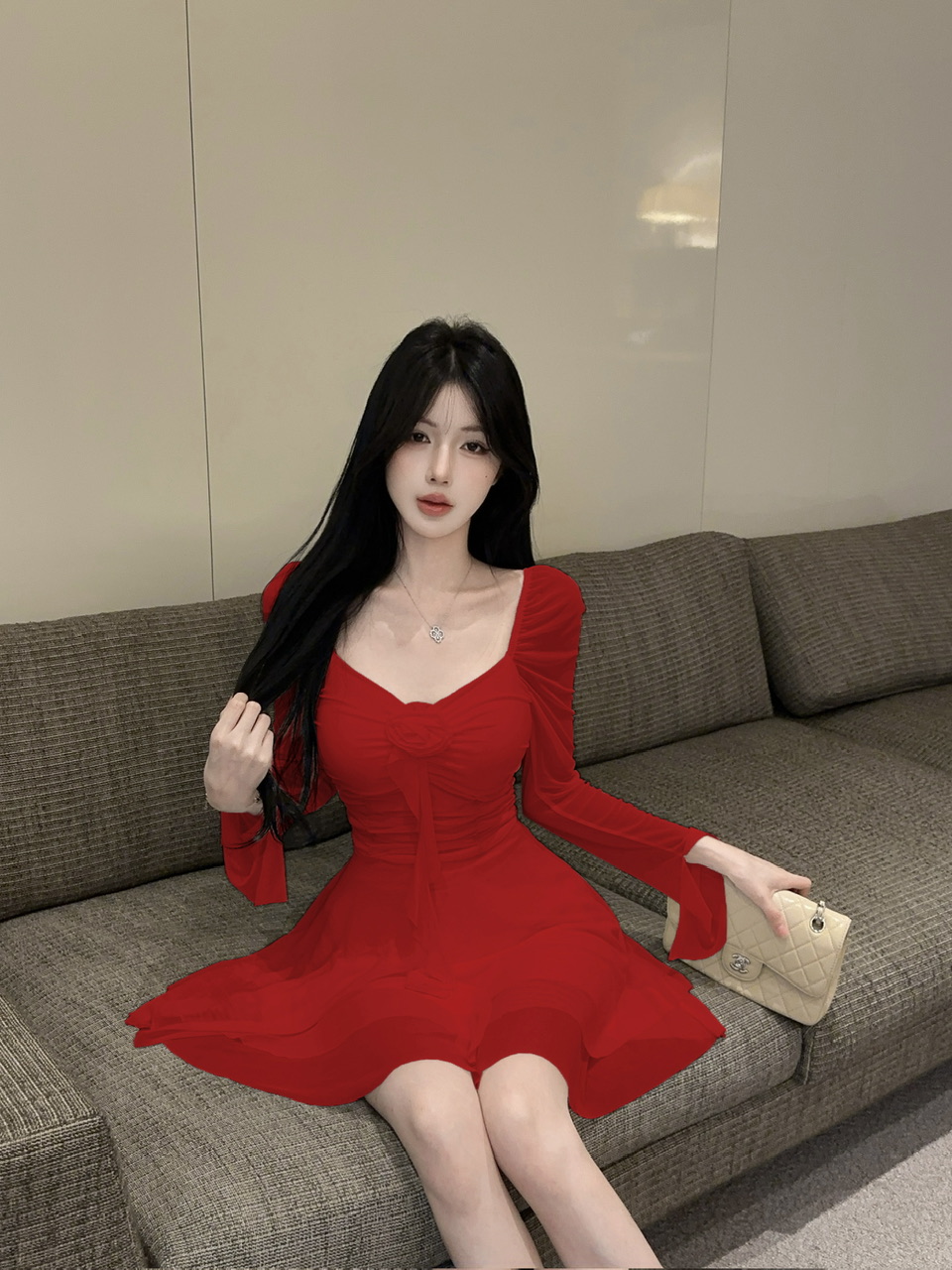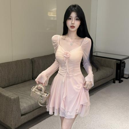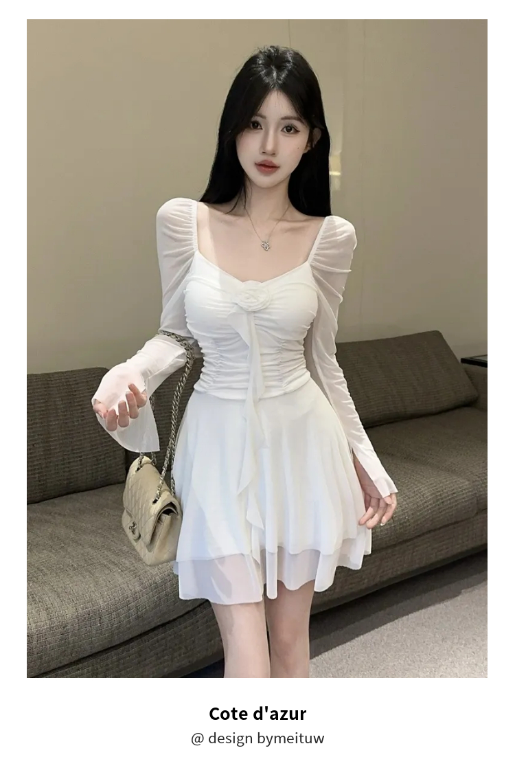 - Style: It is a Korean-style, A-line or fit-and-flare mini dress with a bodycon (tight-fitting) bodice and a flared skirt.Â