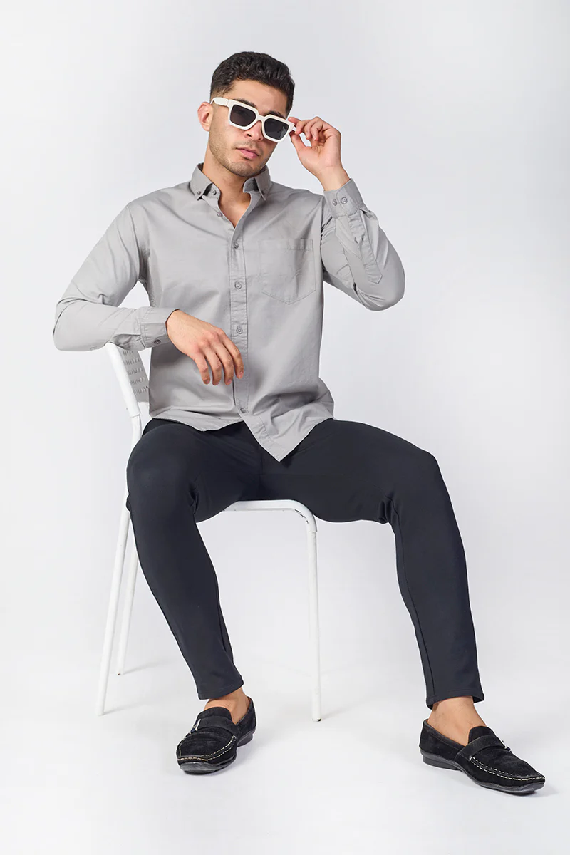 This Cool Grey Giza Slub Shirt refined comfort with everyday sophistication. Made from a premium Giza cotton blend with a subtle slub texture, it feels soft and breathable for all-day wear. Designed with full sleeves, a button-down collar, and a clean solid pattern, it offers a sleek, minimal look. The curved hem allows for easy styling—tucked or untucked. Tailored in a flattering slim fit, it delivers a sharp silhouette perfect for workdays or casual outings. Available in a versatile solid colour that complements any wardrobe. The model is 6 feet tall and wears a size L. Cold machine wash recommended.