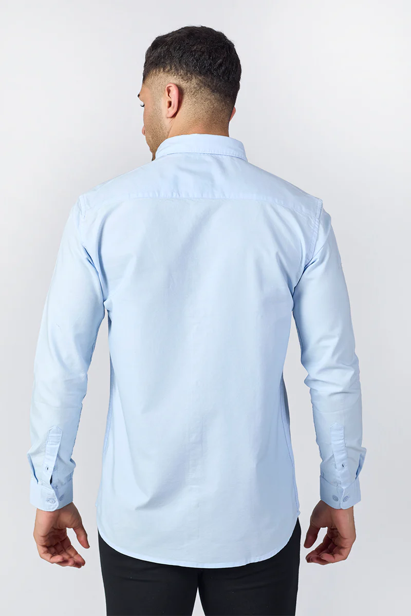 This Core Lab Oxford Slim Fit Casual Shirt – Frosted Blue refined comfort with everyday sophistication. Made from a premium Giza cotton blend with a subtle slub texture, it feels soft and breathable for all-day wear. Designed with full sleeves, a button-down collar, and a clean solid pattern, it offers a sleek, minimal look. The curved hem allows for easy styling—tucked or untucked. Tailored in a flattering slim fit, it delivers a sharp silhouette perfect for workdays or casual outings. Available in a versatile solid colour that complements any wardrobe. The model is 6 feet tall and wears a size L. Cold machine wash recommended.