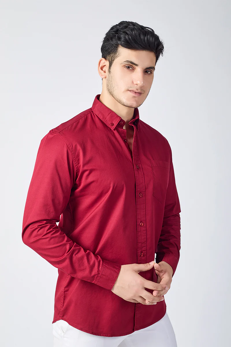Cranberry Giza Slub Slim Fit Casual Shirt