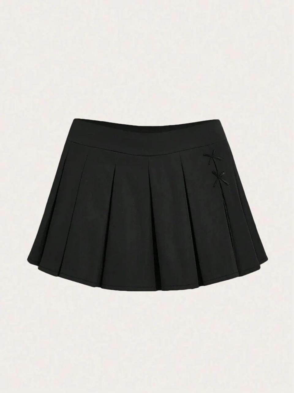 High Waisted Black High Waisted Pleated Mini Skirt with Bow Detail